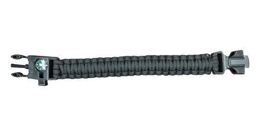 Black Paracord Bracelet With Whistle & Flint