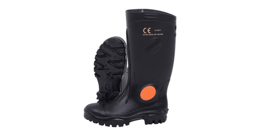 Black/Green Reinforced Steel Toe Tip Gum Boots