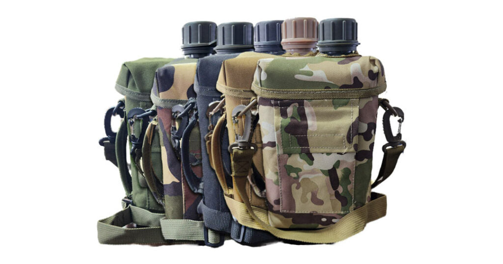 2 Litre Water Bottle with Sling, available in Olive Green, Woodland Camo, Multicam, Black and Fawn.