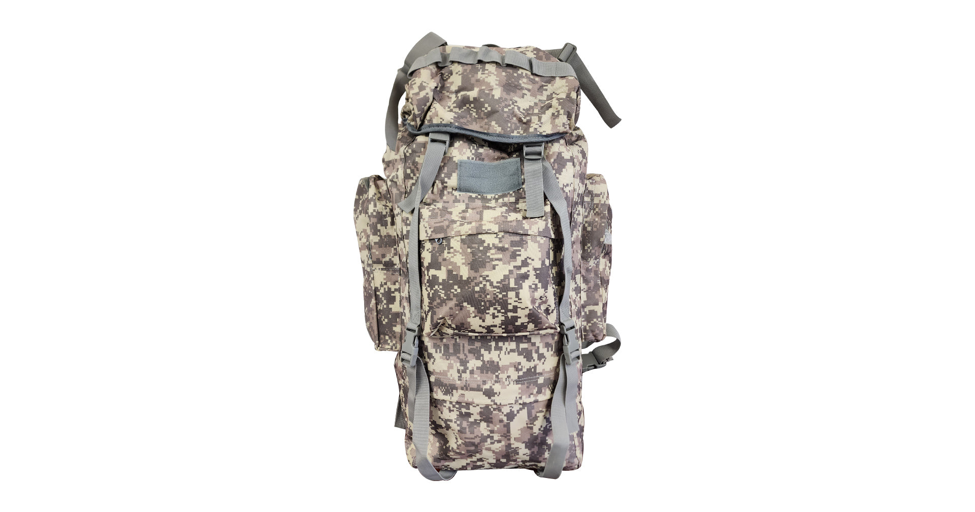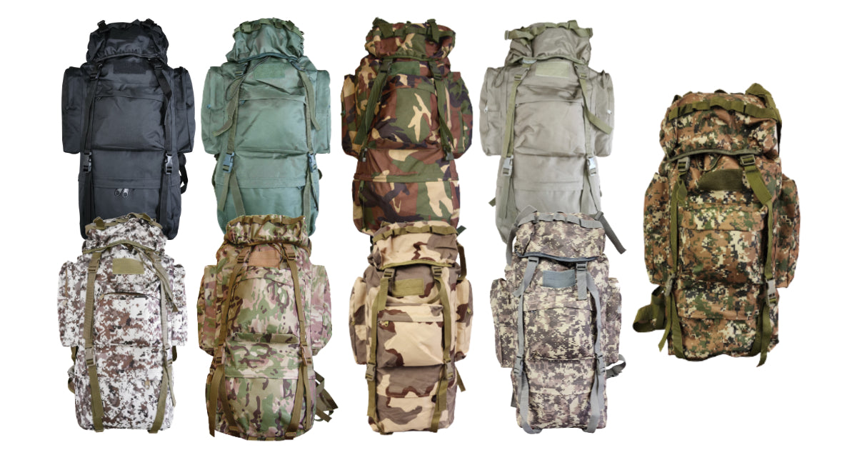 NEW – Large, 70L+, Backpack, featuring built-in tubular metal frame, 7 compartments and a separate water-resistant cover.