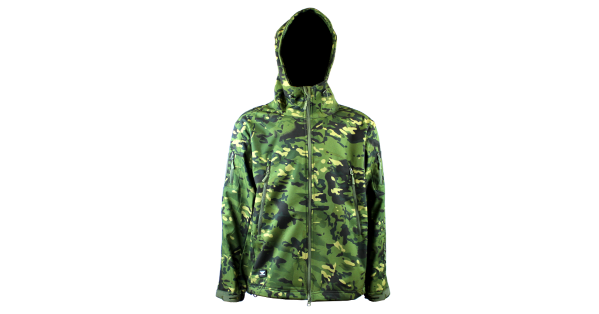 Dark Woodland Soft Shell Jacket crafted for warmth and durability, featuring a weather-resistant design ideal for outdoor adventures, tactical use, or everyday wear.
