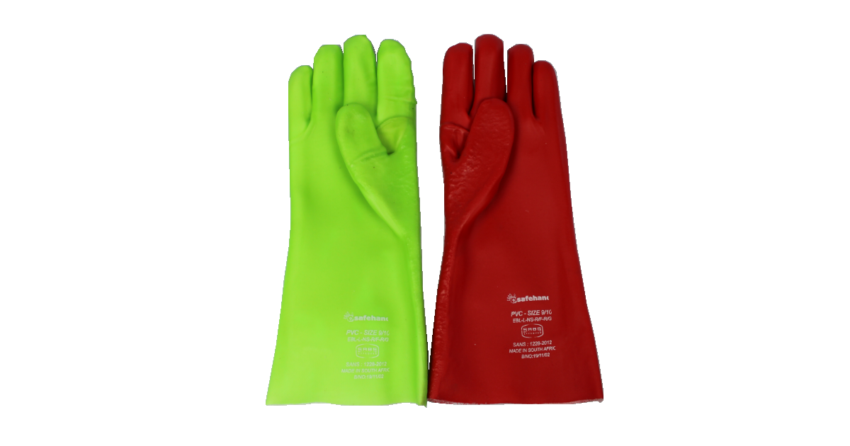 Heavy-duty 400mm PVC gloves (PE31XRG) designed for maximum protection against chemicals and abrasion. Ideal for industrial, cleaning, or outdoor tasks requiring durable hand protection.