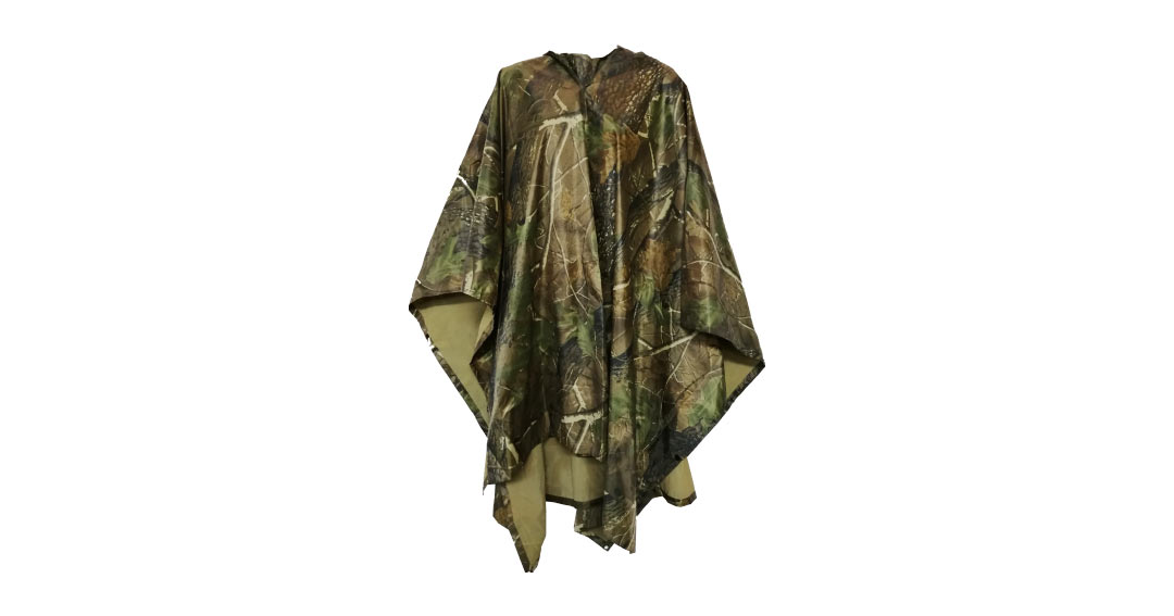 Heavy Duty Poncho available in Olive Green, Deep Forest Camo Woodland Camo, Navy Blue and Black. Includes hood.