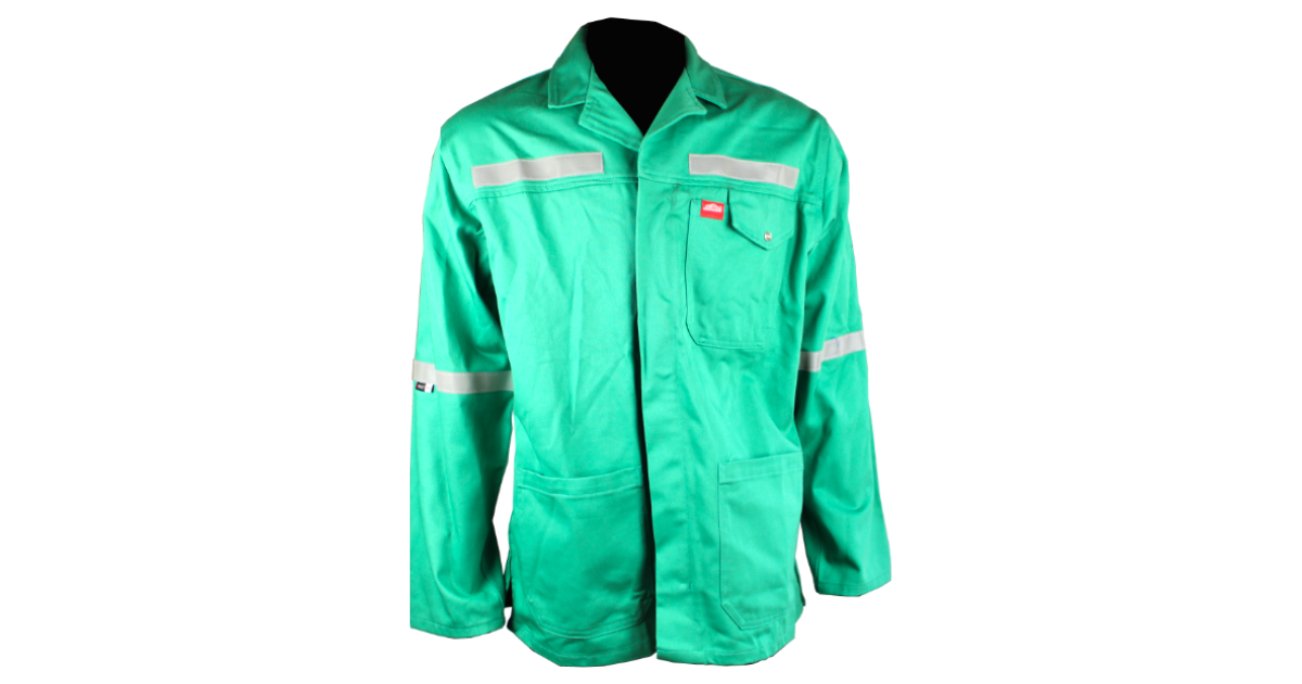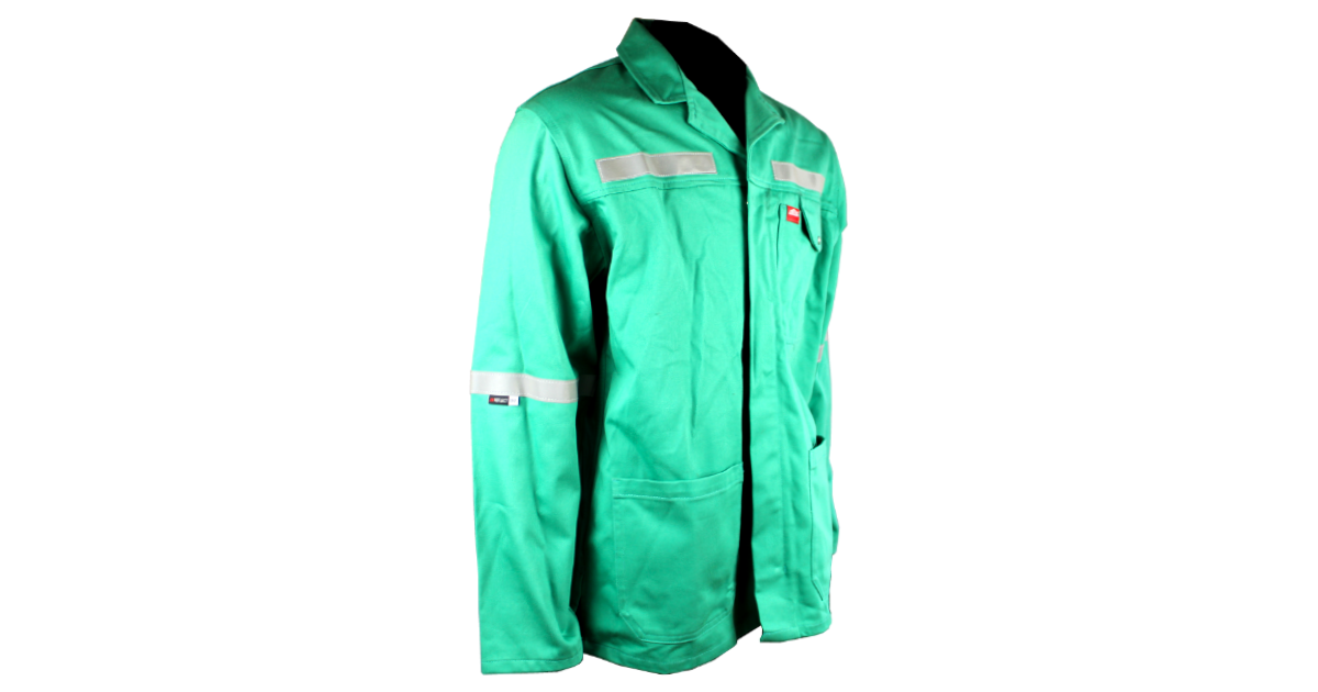 Fern green flame-retardant jacket, size 97, offering superior protection in high-heat or hazardous work environments. Durable and comfortable, ideal for industrial or outdoor safety use.