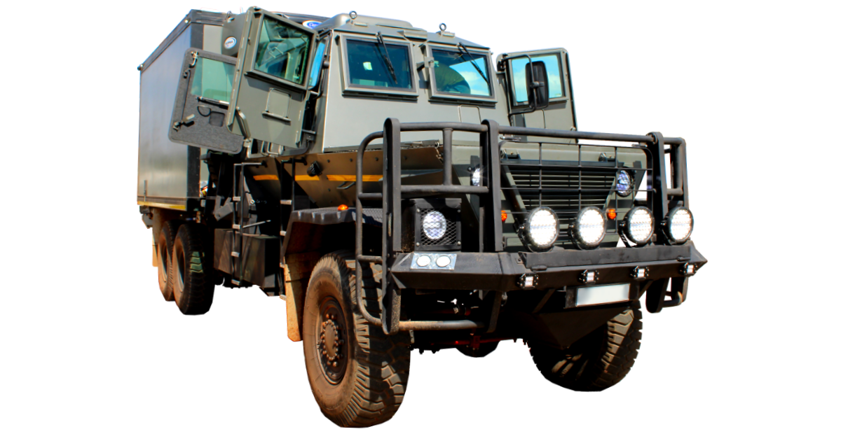 The Kwevoel is a versatile armoured transport truck built for heavy-duty logistics in high-risk environments. Its protected cab shields crew from ballistic and blast threats, while the robust chassis handles demanding loads and rough terrain with ease. Ideal for cargo transport, support missions, and custom mission modules.